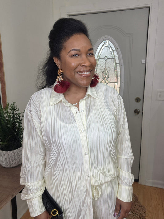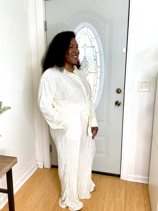 Cream Pleated Set