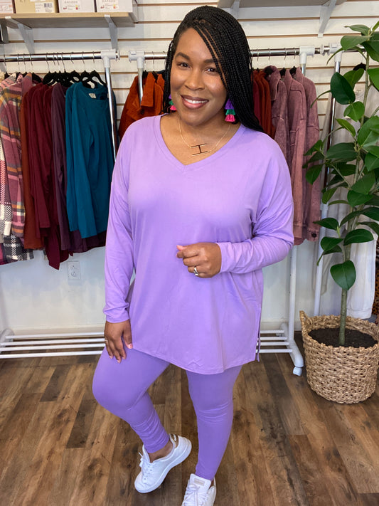 V-Neck Long Sleeve Lavender Set